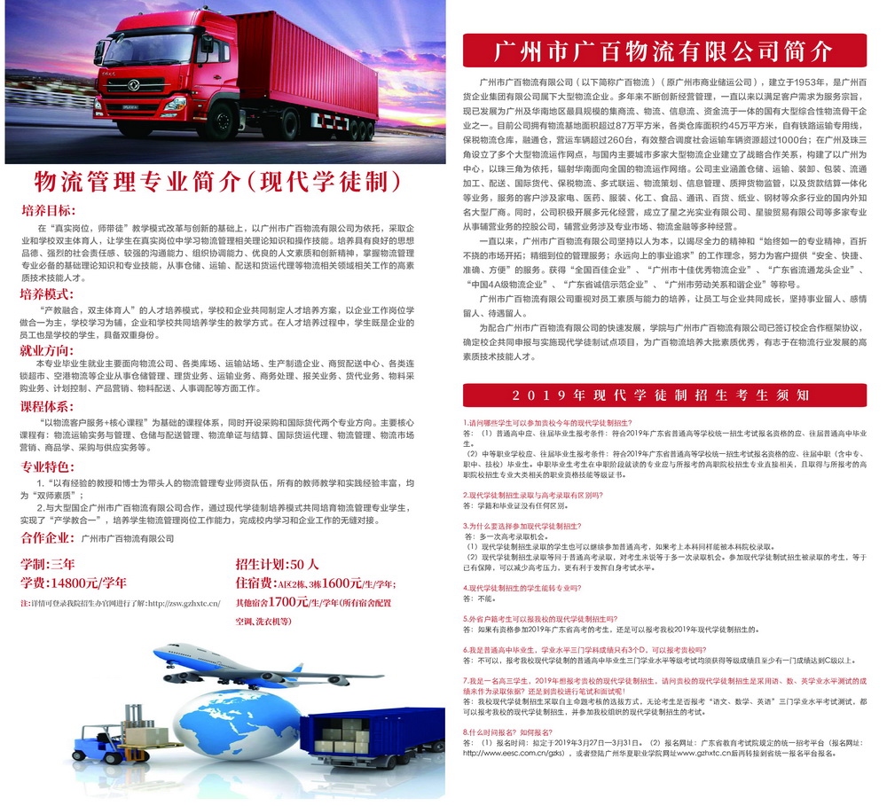 2019年现代学徒制招生专业(工程造价、物流管理)